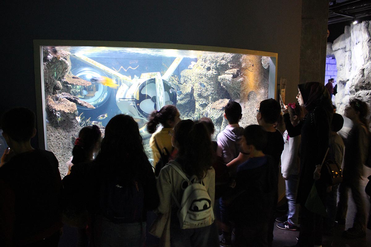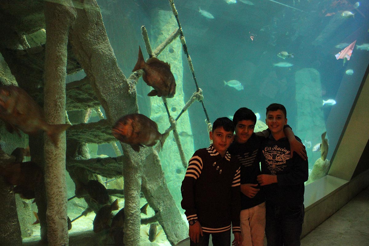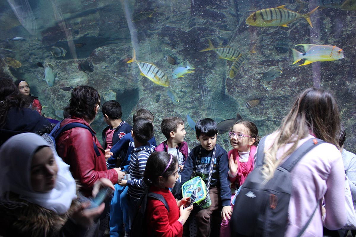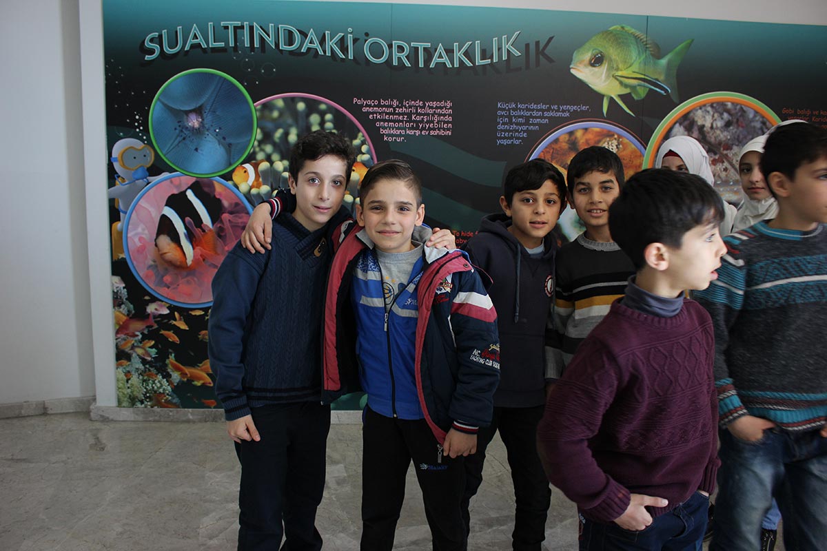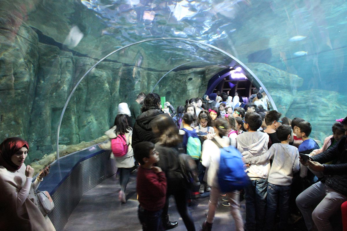 هناك الكثير من الاطفال السوريين والاتراك المتواجدين في مدرسة سلطان بيلي سويا والذين لم تتح لهم فرصة إكتشاف عالم البحار من قبل ، لذا قمنا باتاحة الفرصة لهم لكي يتعرفوا بهذا العالم خلال هذا الاسبوع .فسنحت الفرصة لهؤلاء الاطفال رؤية المئات من الاسماك مثل سمك الراي اللاذع وسمك البيرانا والهامور وسمك الليمون بالاضافة الى اشهر انواع الاسماك في البحار وهي سمكة القرش.بالاضافة الى عالم البحار اتيحت الفرصة ايضا لرؤية عالم غابات الامازون الماطرة ففيها تعرف الاطفال على اخطر انواع مخلوقاتها وهي افعى الاناكوندا ذات المترين والنصف.