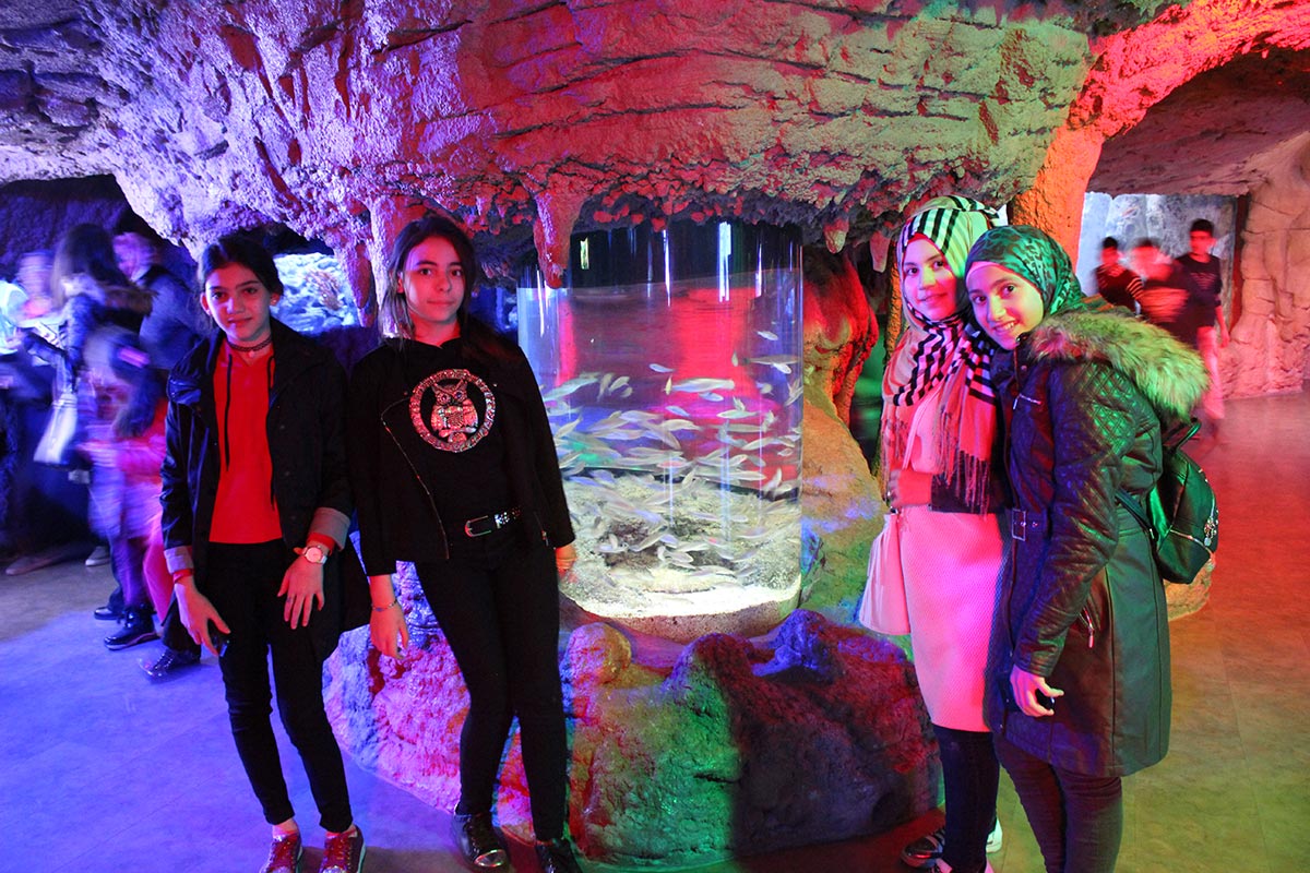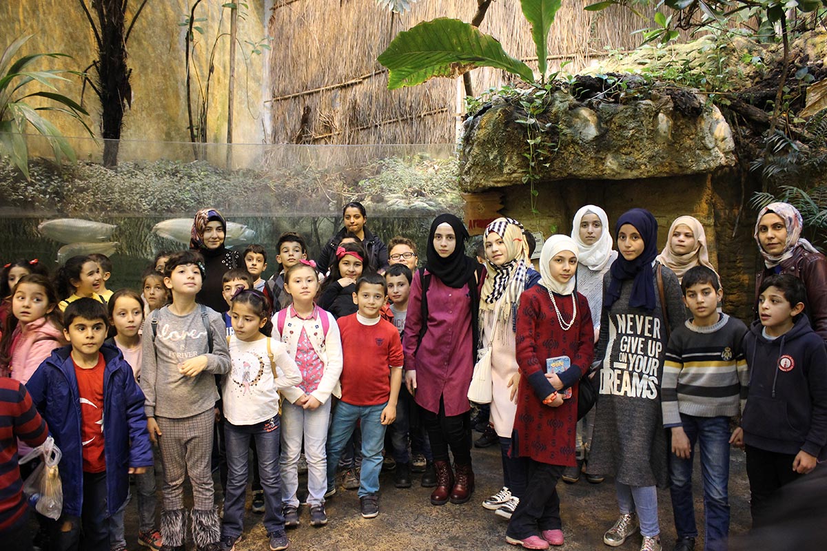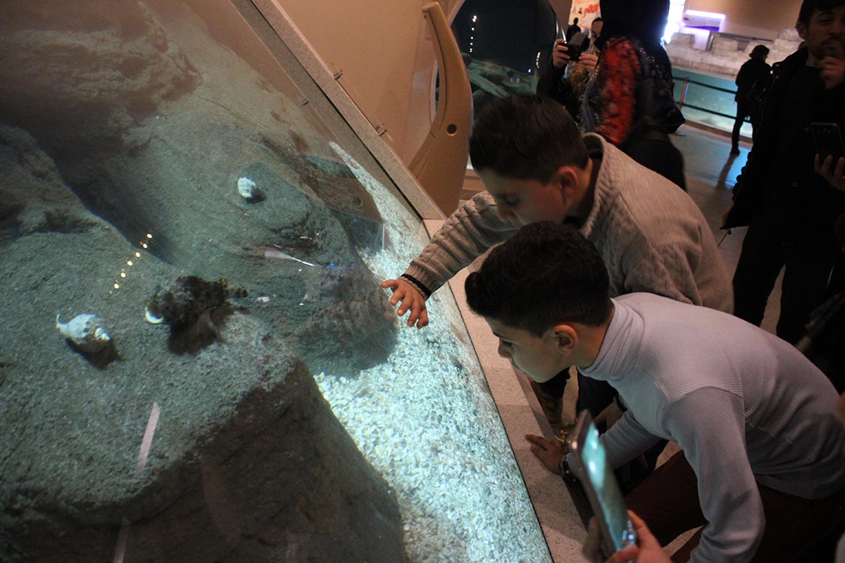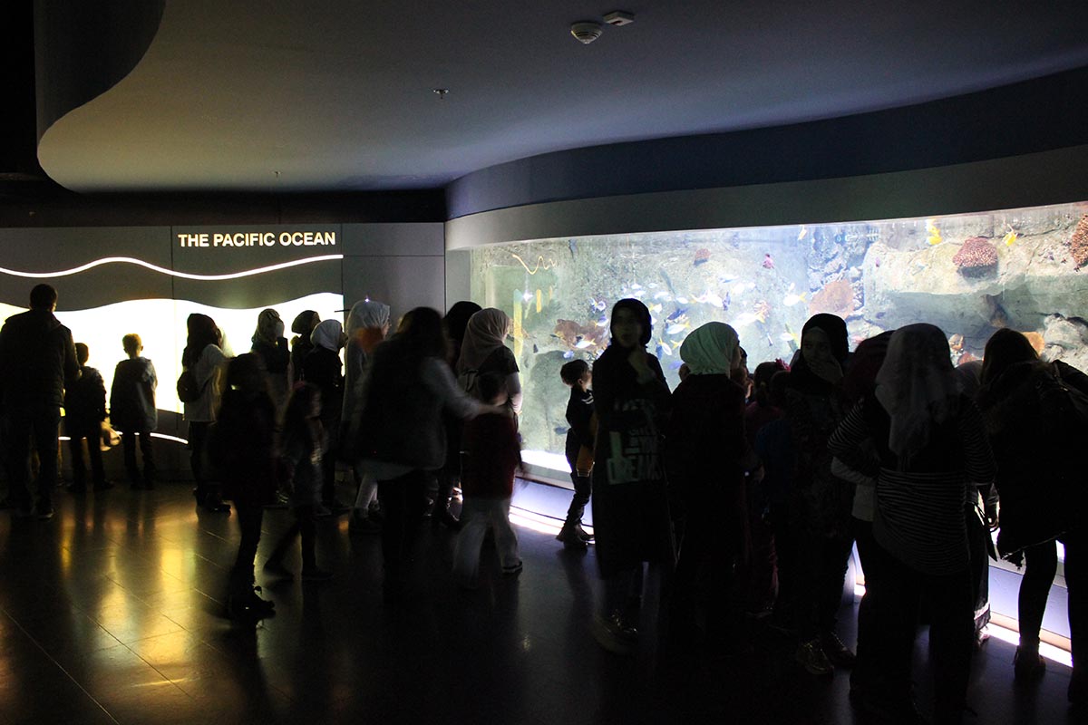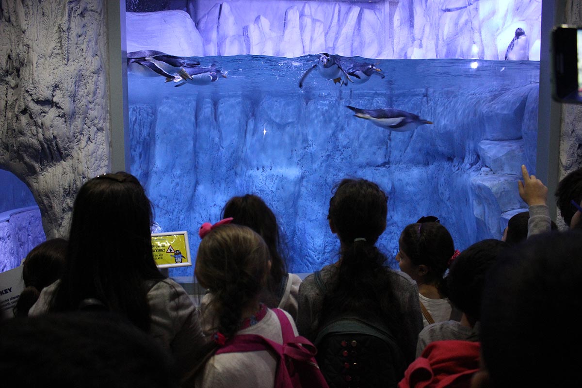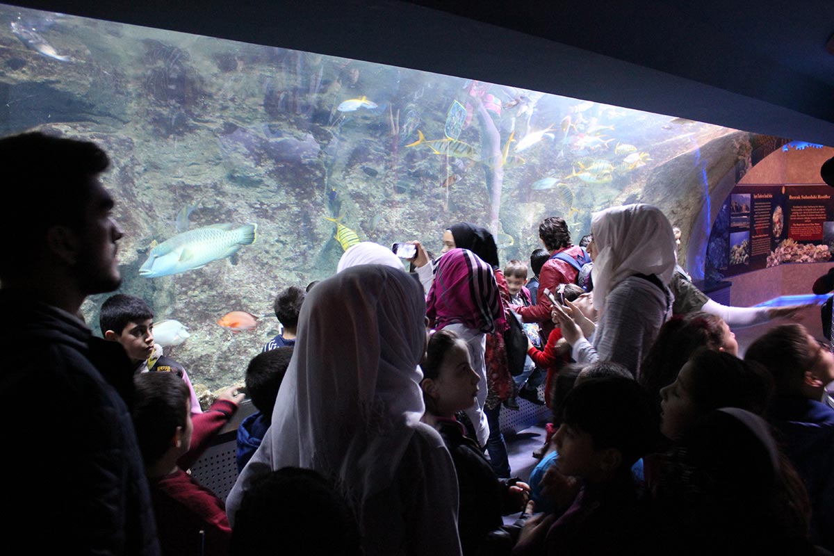 هناك الكثير من الاطفال السوريين والاتراك المتواجدين في مدرسة سلطان بيلي سويا والذين لم تتح لهم فرصة إكتشاف عالم البحار من قبل ، لذا قمنا باتاحة الفرصة لهم لكي يتعرفوا بهذا العالم خلال هذا الاسبوع .فسنحت الفرصة لهؤلاء الاطفال رؤية المئات من الاسماك مثل سمك الراي اللاذع وسمك البيرانا والهامور وسمك الليمون بالاضافة الى اشهر انواع الاسماك في البحار وهي سمكة القرش.بالاضافة الى عالم البحار اتيحت الفرصة ايضا لرؤية عالم غابات الامازون الماطرة ففيها تعرف الاطفال على اخطر انواع مخلوقاتها وهي افعى الاناكوندا ذات المترين والنصف.