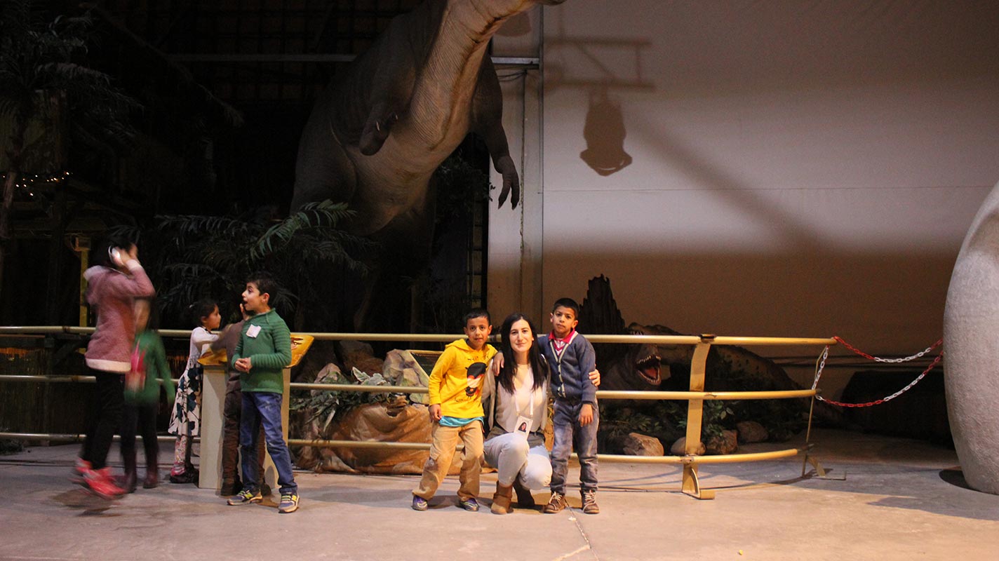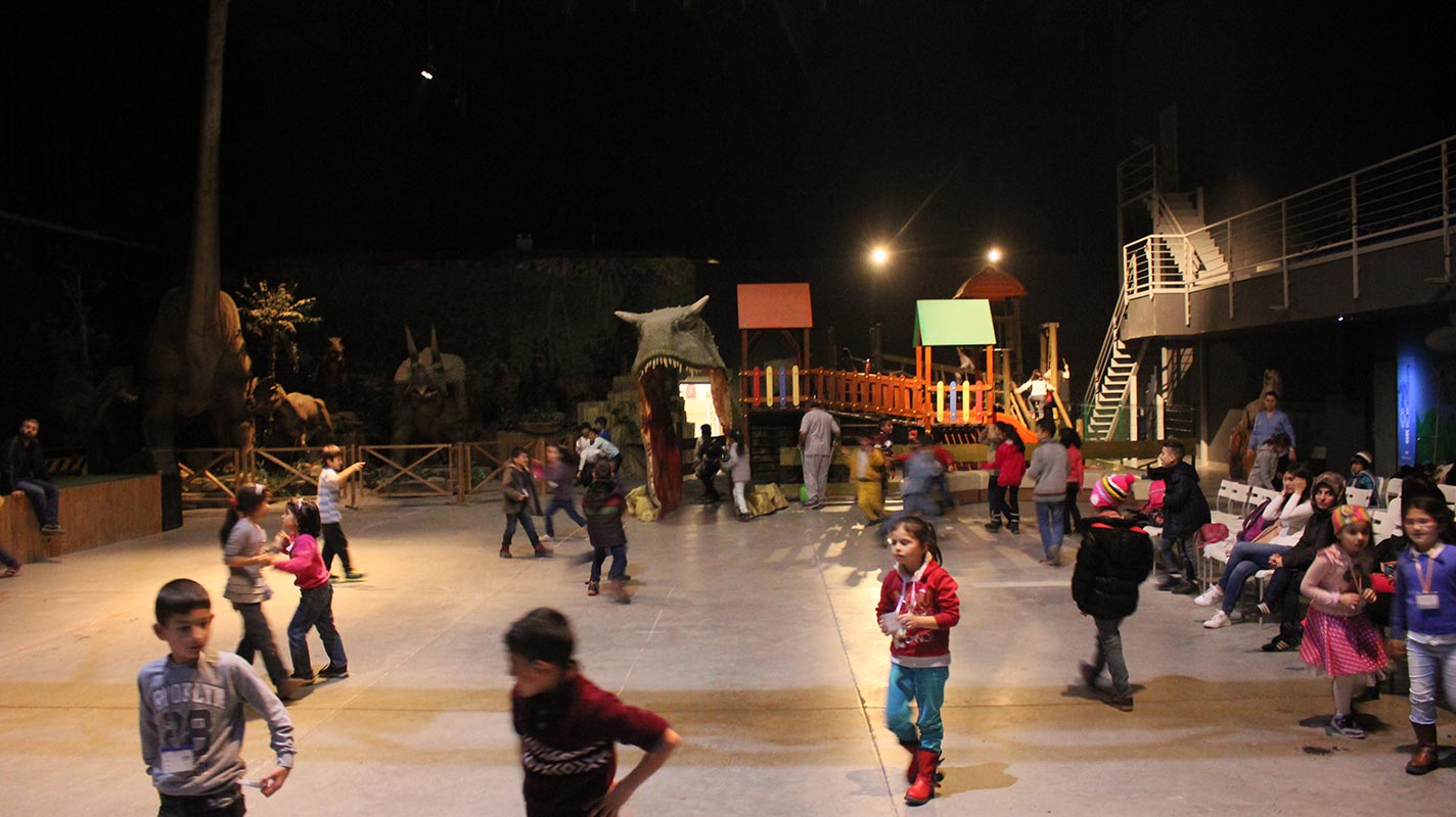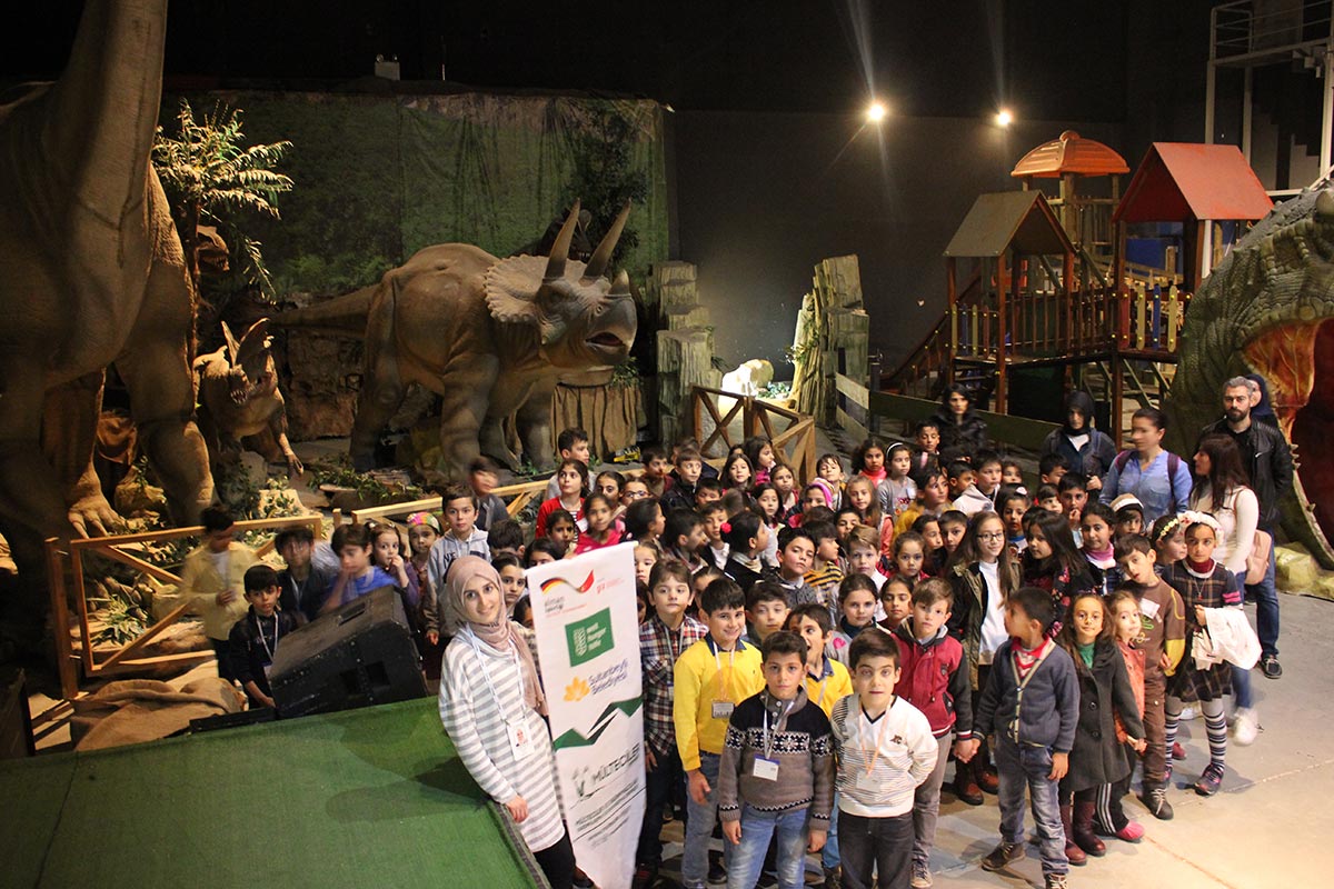 كما أتيحت الفرصة للأطفال من خلال رحلة جورسيك لاند وتبادل معلوماتهم عن الديناصورات لقضاء الوقت سوياً مع الأصدقاء الأتراك و السوريين