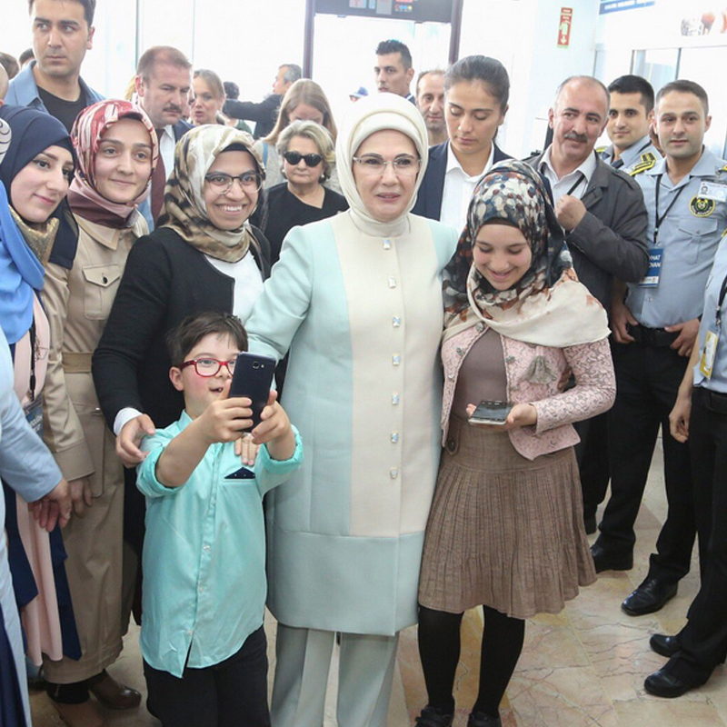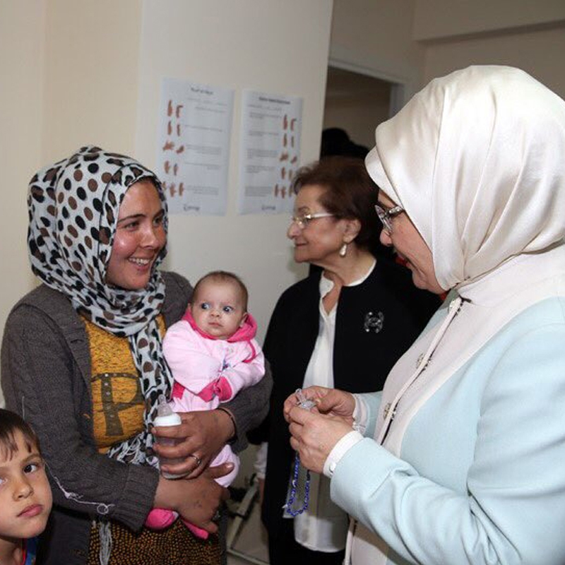 قامت السيدة أمينة أردوغان زوجة رئيس الجمهورية السيد رجب طيب أردوغان بزيارة مركز اللاجئين الإجتماعي بسلطان بيلي بتاريخ 26 أيار 2017