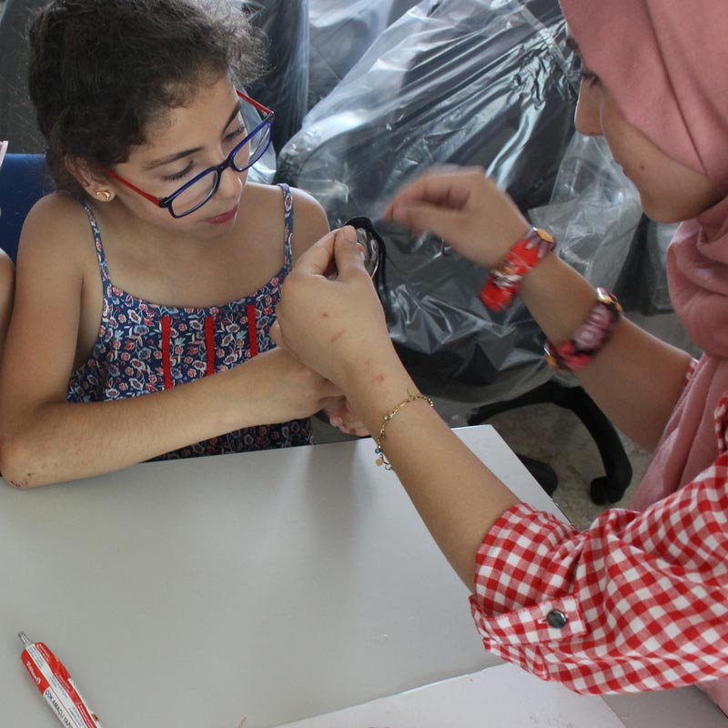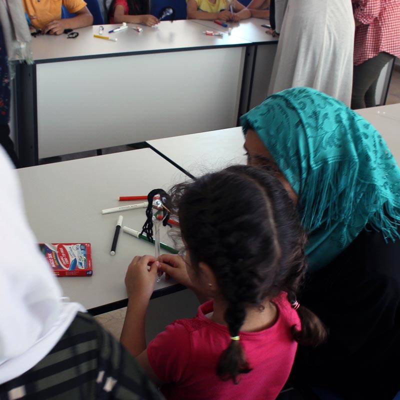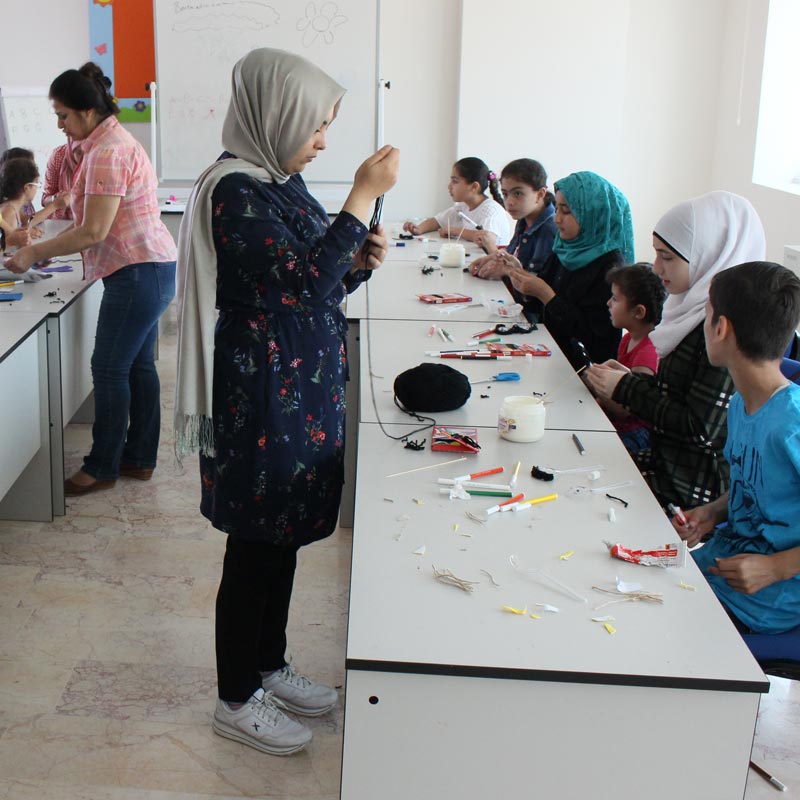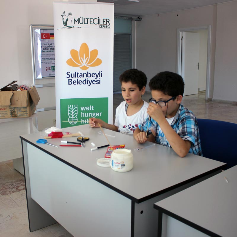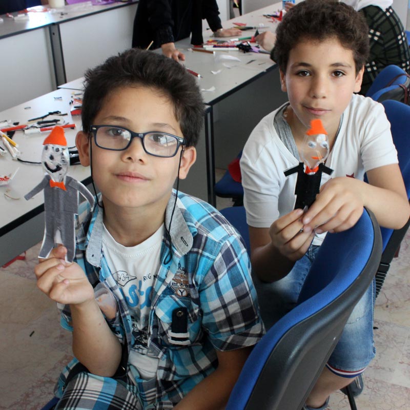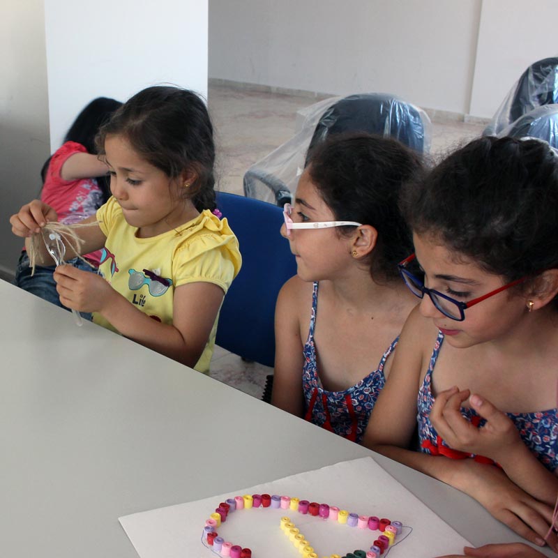 بدعم من منظمة- التنمية والمساعدات الإنسانية الألمانية(WHH)- تم القيام بورشات عمل أسبوعية مختلفة شارك فيها الأطفال المدارس خلال عطلة فصل الصيف، وكان عنوان النشاط لهذا الأسبوع صنع طفل من المعالق