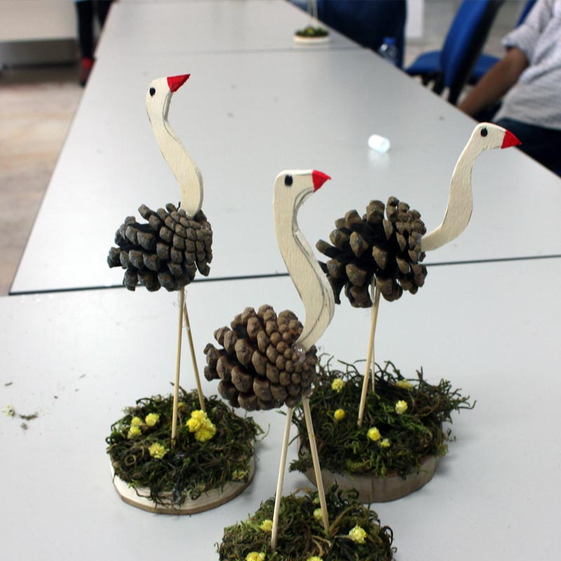 صناعة الأطفال لطائر النعام من المواد المستهلكة الموجودة في الطبيعة