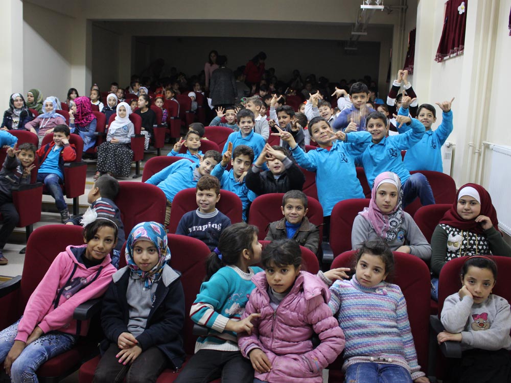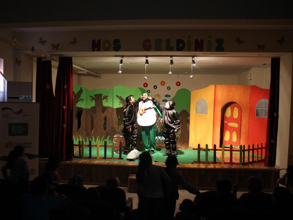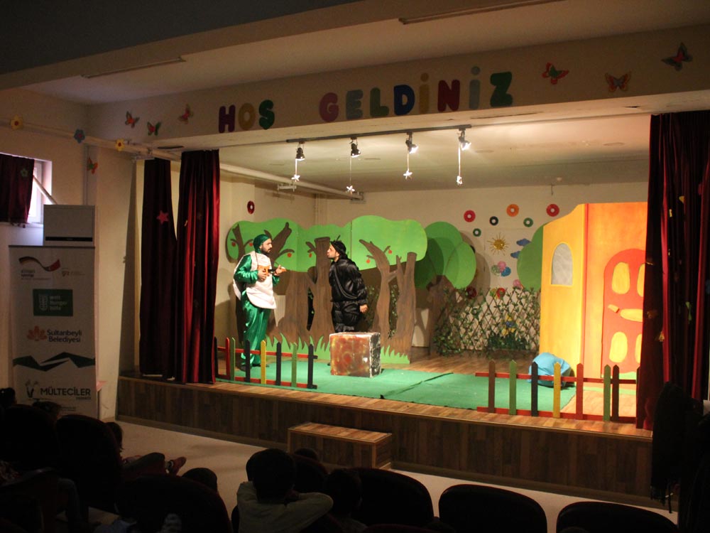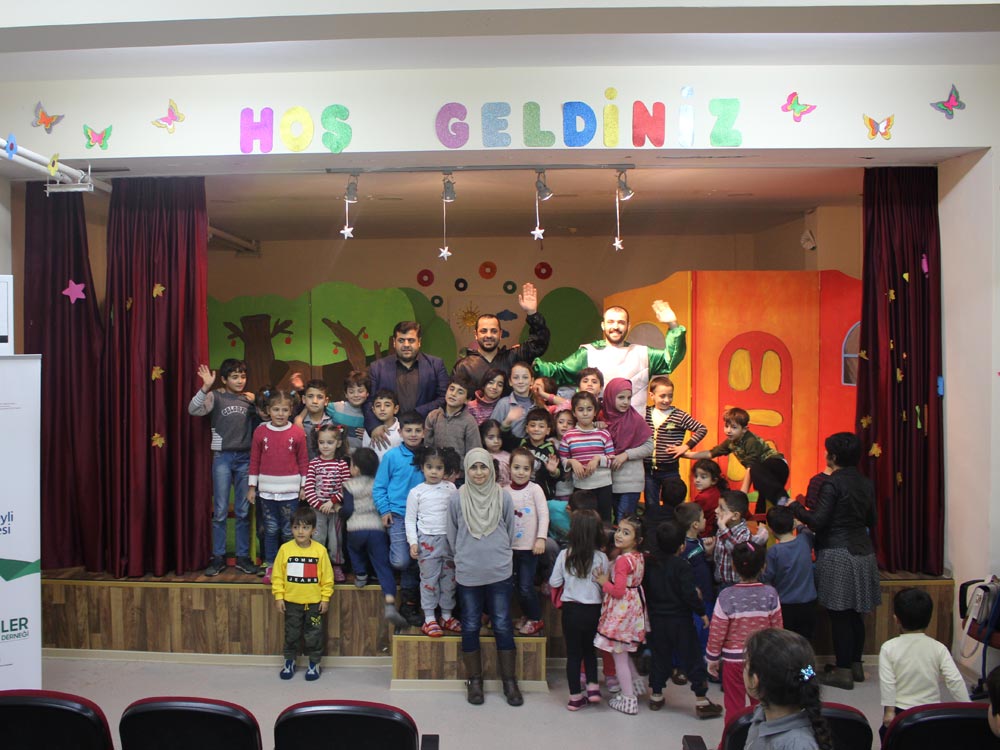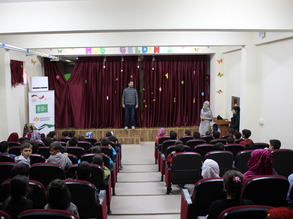 من أجل تسهيل اختلاط الأطفال الأتراك مع الأطفال السوريين من طلبة مدارس سلطانبيلي يتم تنظيم عروض مسرحية بشكل منتظم ومستمر