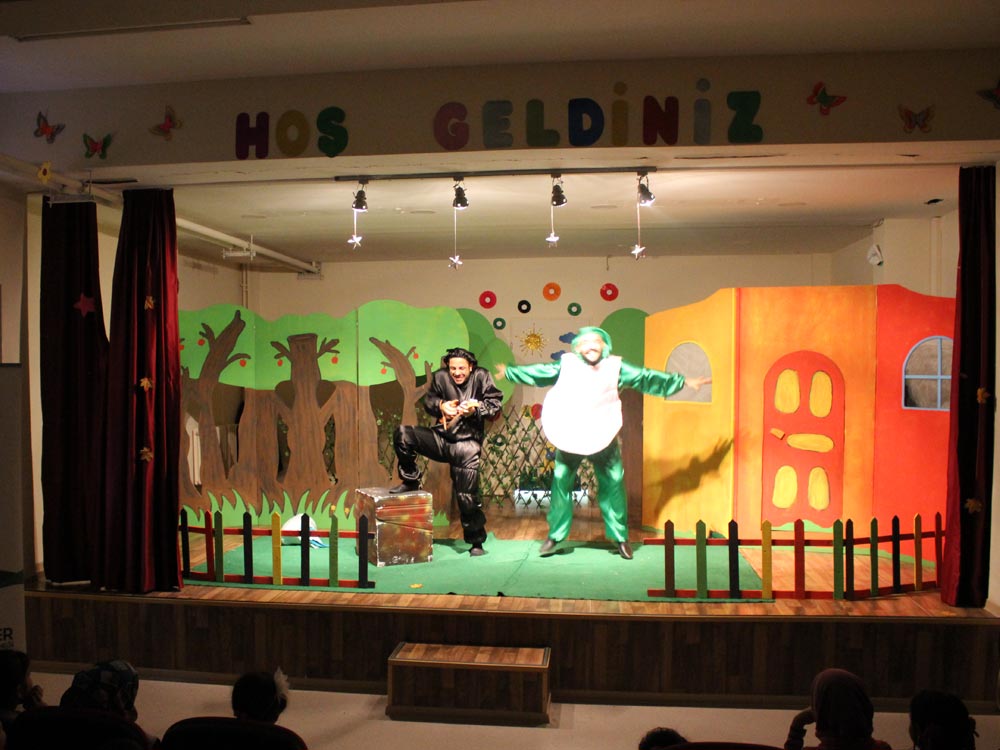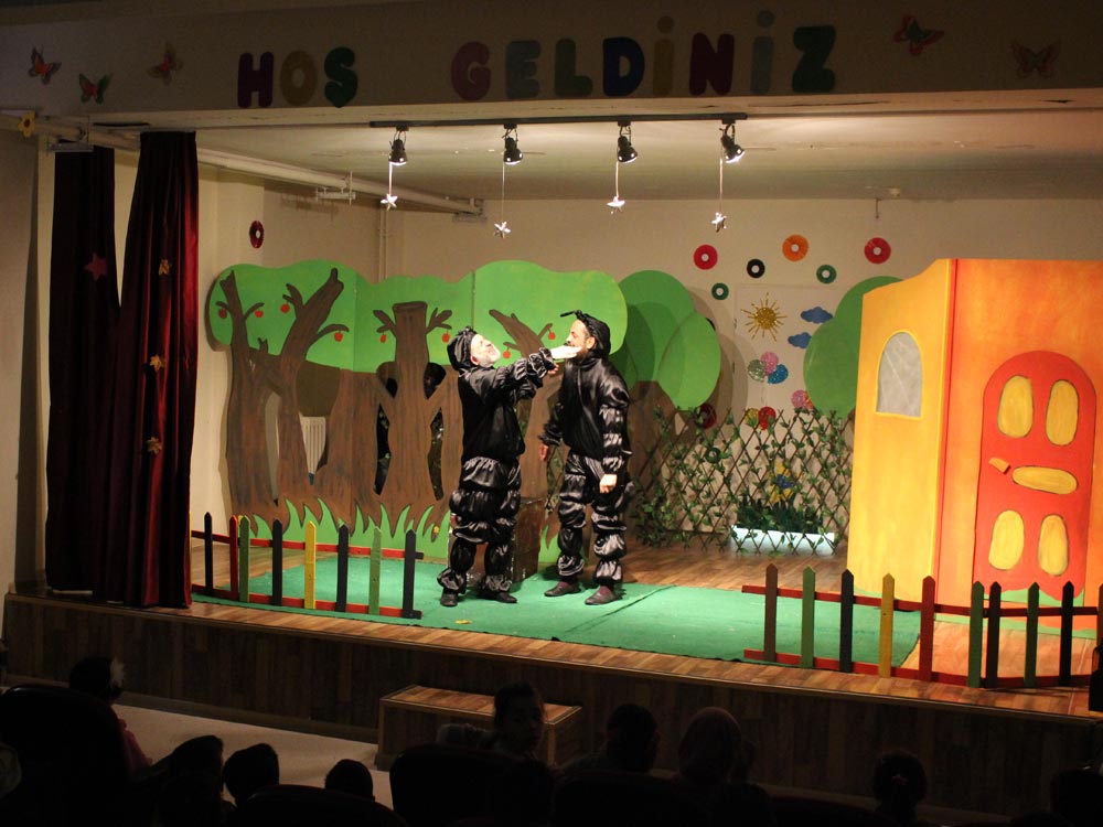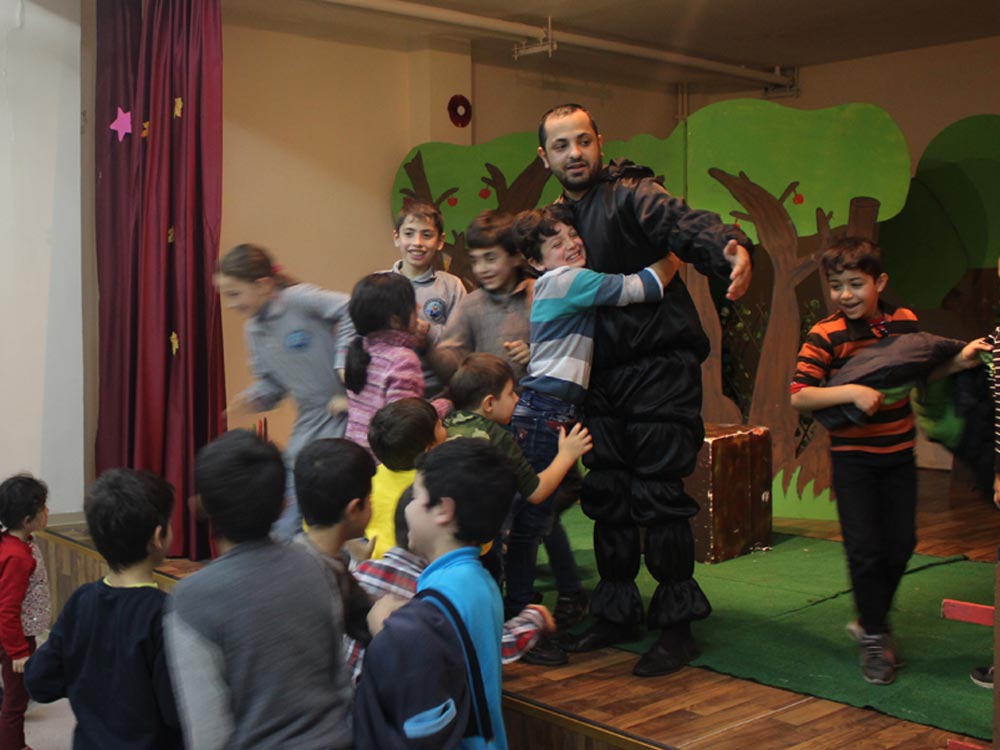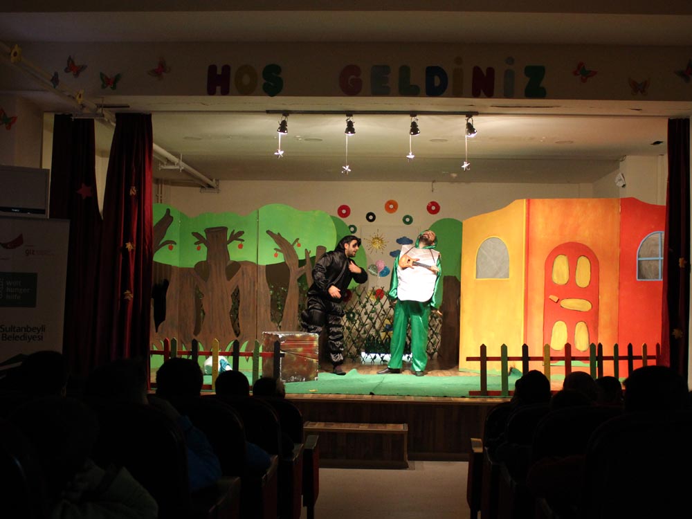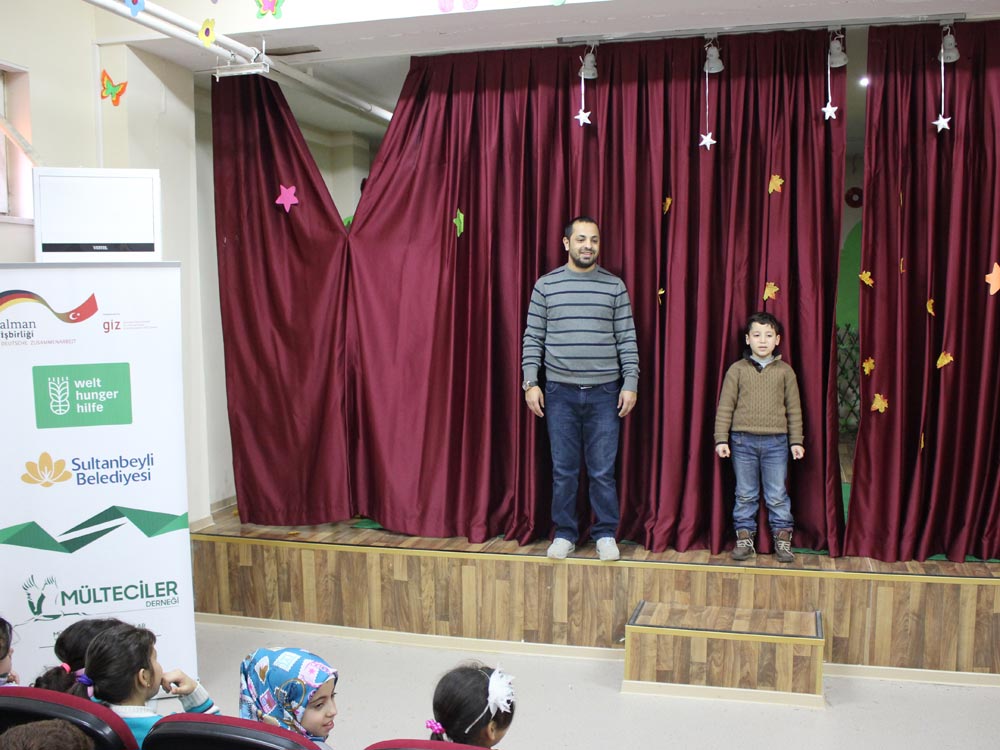 من أجل تسهيل اختلاط الأطفال الأتراك مع الأطفال السوريين من طلبة مدارس سلطانبيلي يتم تنظيم عروض مسرحية بشكل منتظم ومستمر