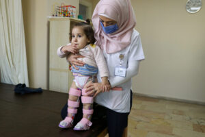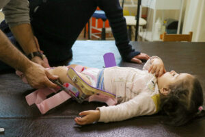 Khansaa Hamadeh, who had difficulty moving her legs, was two years old. Khansaa was born with this disorder, and her mother wanted her child to be able to stand on her own legs. The mother, who learned that free physical therapy services were provided at the Umraniye office of the Refugees Association, applied in September 2021. Hamadeh’s condition was evaluated by physical therapists and it was decided to perform an orthosis to correct the disfigurement of her legs and to prevent discomfort and damage to other joints during the first intervention. With the support of an auxiliary device and ongoing physical therapy sessions, Khansaa has reached the stage of sitting without support and standing assisted by the orthosis.