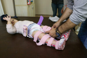 When Khansaa’s family applied at our association’s Umraniye office about two months ago, she had a loss of sensation and movement in her legs due to her congenital disease. The patient underwent physical therapy, the necessary exercises and electrotherapy were performed. For the process to be monitored much better and healthier, her family was shown the necessary home exercises. The treatment process has reached the stage of assisted standing and unsupported sitting with the given orthosis. The patient’s treatment continues on a regular basis. Khansaa did not experience any difficulties during the treatment process. On the contrary, she continues to improve herself day by day. The next goal is to gradually progress in her treatment and ensure that she can walk without support.