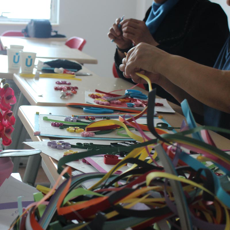The Refugees Association’s Syrian women met this week as a part of a quilling and modern knitting techniques handcrafts workshop. Our workshop is trying to provide women who are facing many problems in daily life with art therapy. On the other hand, workshop learnings may be oriented towards providing a material gain in the future.