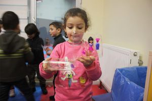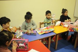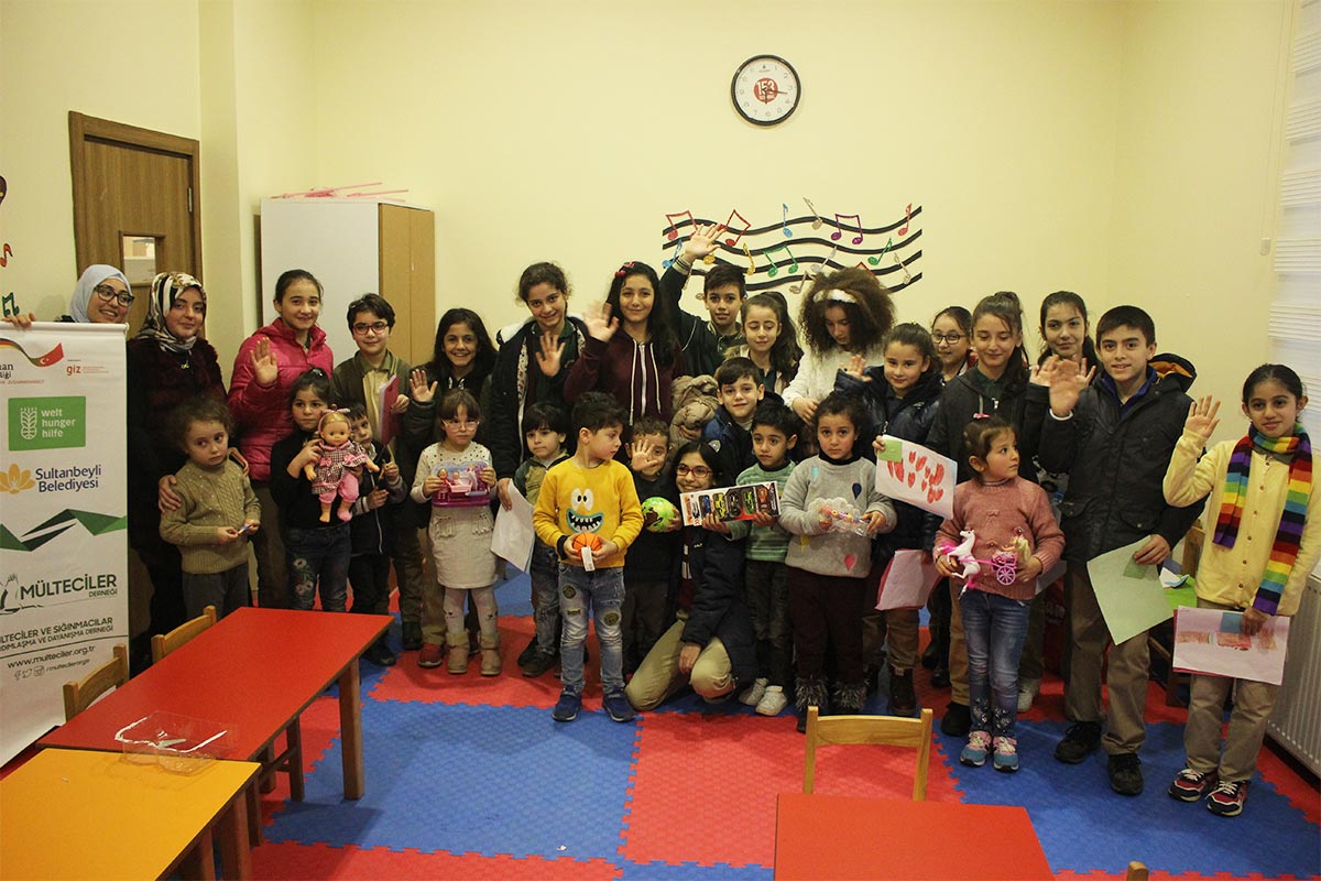 A volunteer teacher and his students began working on a campaign to assemble toys at their Pendik Medar Pasha Intermediate School and share them with children studying at the Refugee association kindergarten. They visited our institution after collecting games from their friends at school and adding some new toys. And in return children who were happy with the gifts thanked the students by drawing and presenting the paintings to them.