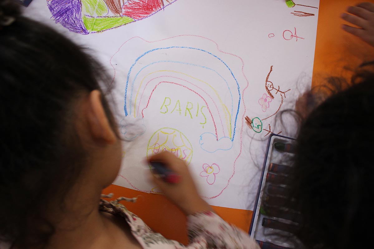 Every September 21st, the Peace Bell that says “Long live, Peace!” is played at the UN headquarters. This bell, built by Japan in memory of the deaths of the wars, was made with coins donated by children from all continents of the world. Considering the importance of peace for children, we have performed a peace-themed event with children from the Refugee Society children’s friendly area.