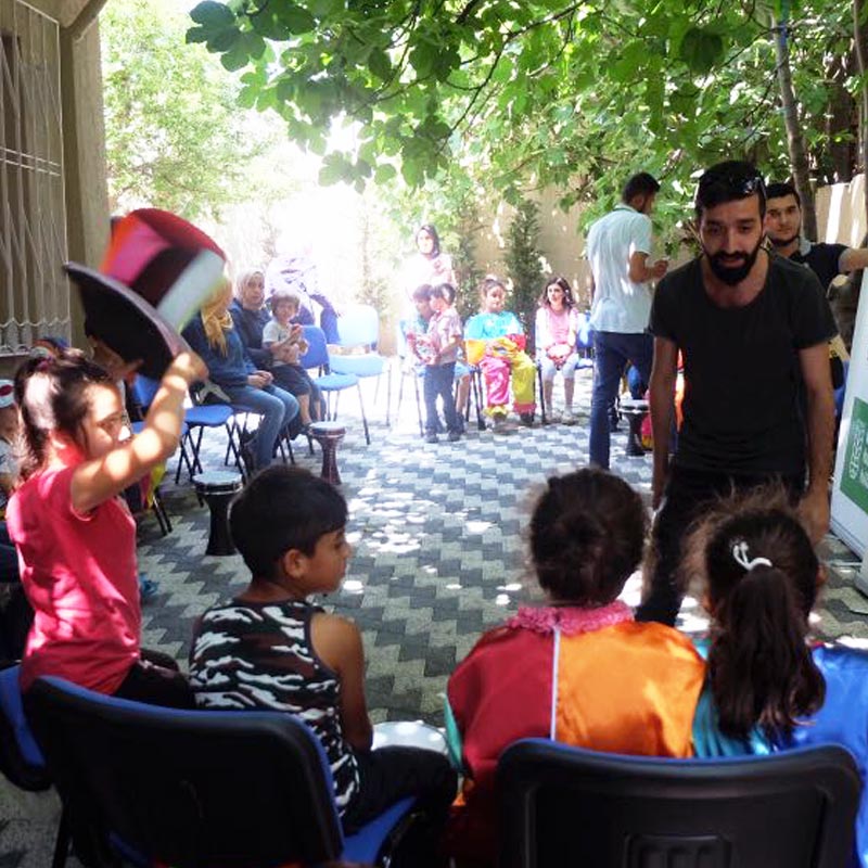 Darbuka, tambourine and maracas were distributed to all children. The children who try to keep rhythm in small groups with the guidance of the instructor follow the command given together afterwards. In the work done with the support of Welthungerhilfe, children adapt to the rhythm of music all together. We believe that similar workshops will contribute to the social adaptation of children in the two different communities living in Sultanbeyli.